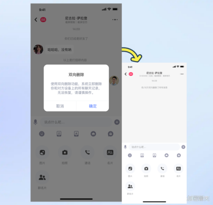 密鸽不仅拥有高端的端对端加密技术,还有很多保护用户聊天隐私的功能。如截屏能收到提醒;聊天对话可以设置密码,只有知道正确密码的人才能点击进入;所有聊天消息,不管是你的还是对方的,都可以不限时一键撤回。