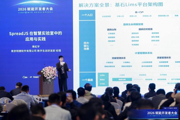 南京明德软件有限公司数字生态研发部经理 蒋虹宇聚焦计量检测场景,展示了 SpreadJS 在实验室原始记录编制、模板制作、公式计算与修改痕迹追溯等方面的应用价值。